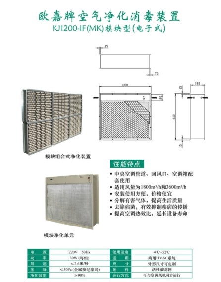 欧嘉牌空气净化消毒装置KJ1200-LF(MK)模块型(电子式)