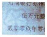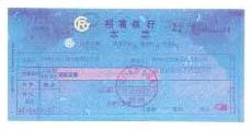 紫外线下可以看到发荧光的银行行徽和省份简称。出票金额栏采用水溶性红色荧光油墨印制,紫外线下发出微弱的红色荧光,遇水溶解和渗透。